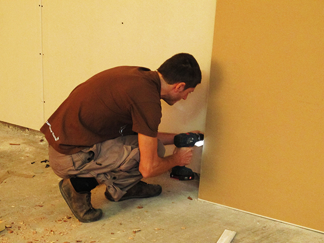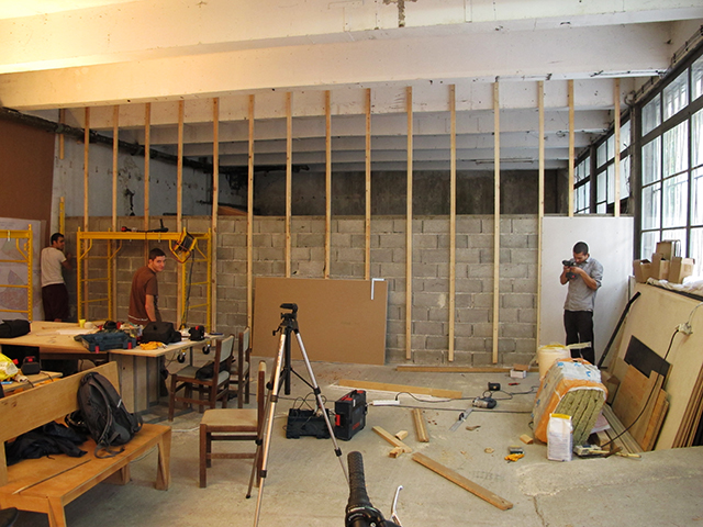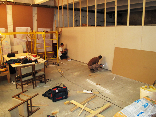 Тъй като зимата вече чука на вратата ни, най-сетне успяхме да преградим стената на голямото помещение от работилницата към съседния неотоплен склад.